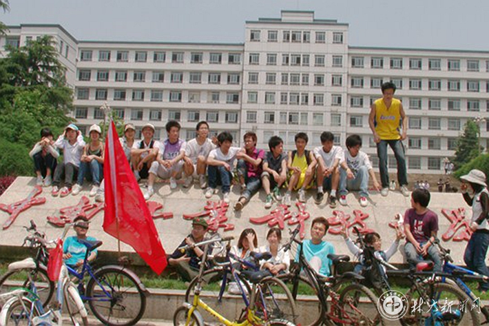 2011年5月阳哲东(前排左2)作为班长组织班级自行车株洲行
